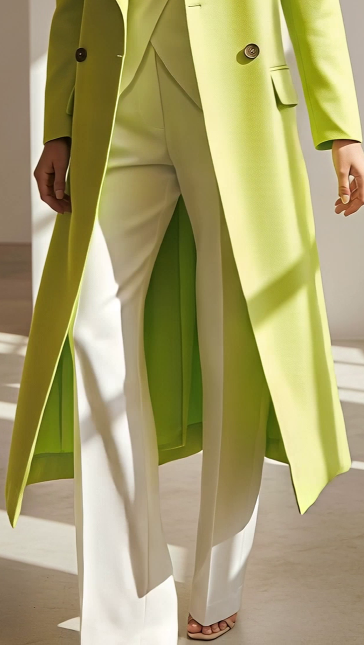 Coat: Double-breasted, button-up